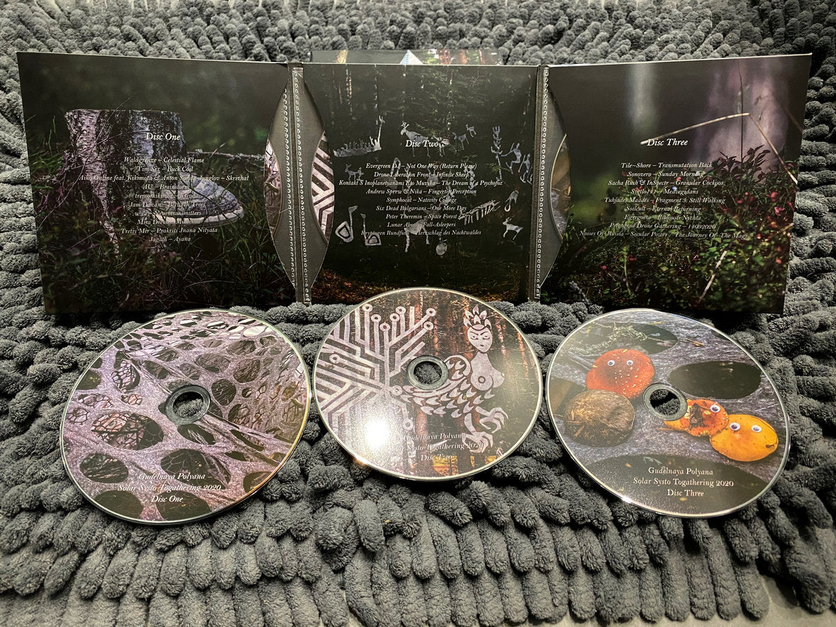 Here we have a three-hour long compilation of live recordings, made in September 2020 at Gudelnaya Polyana (Russian for “droning glade”) – the experimental stage of the Solar Systo Togathering festival. The concept of Gudelnaya Polyana is total drone, infinitely diverse, but united in its essence. Every year in any weather dozens of musicians gather in the woods of the Leningrad region to take part in this ritual action, keeping themselves warm with bonfires, hot pu-er tea and kilowatts of sound.